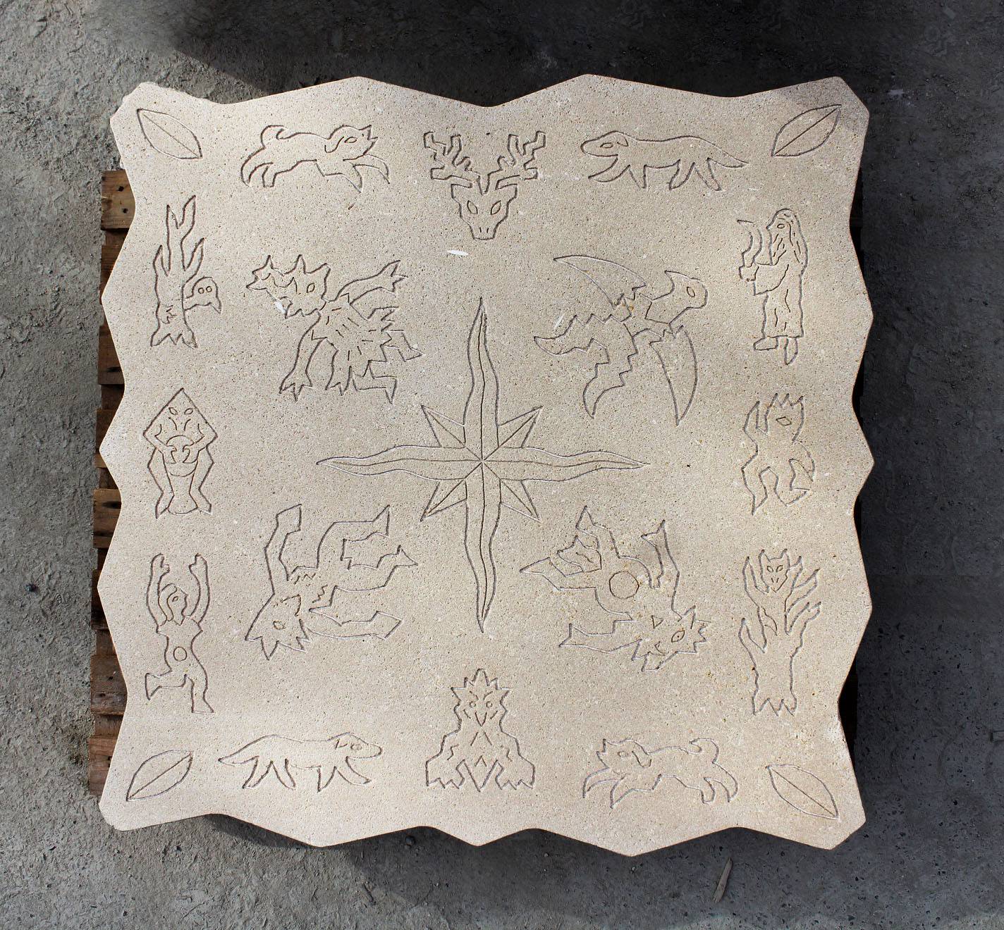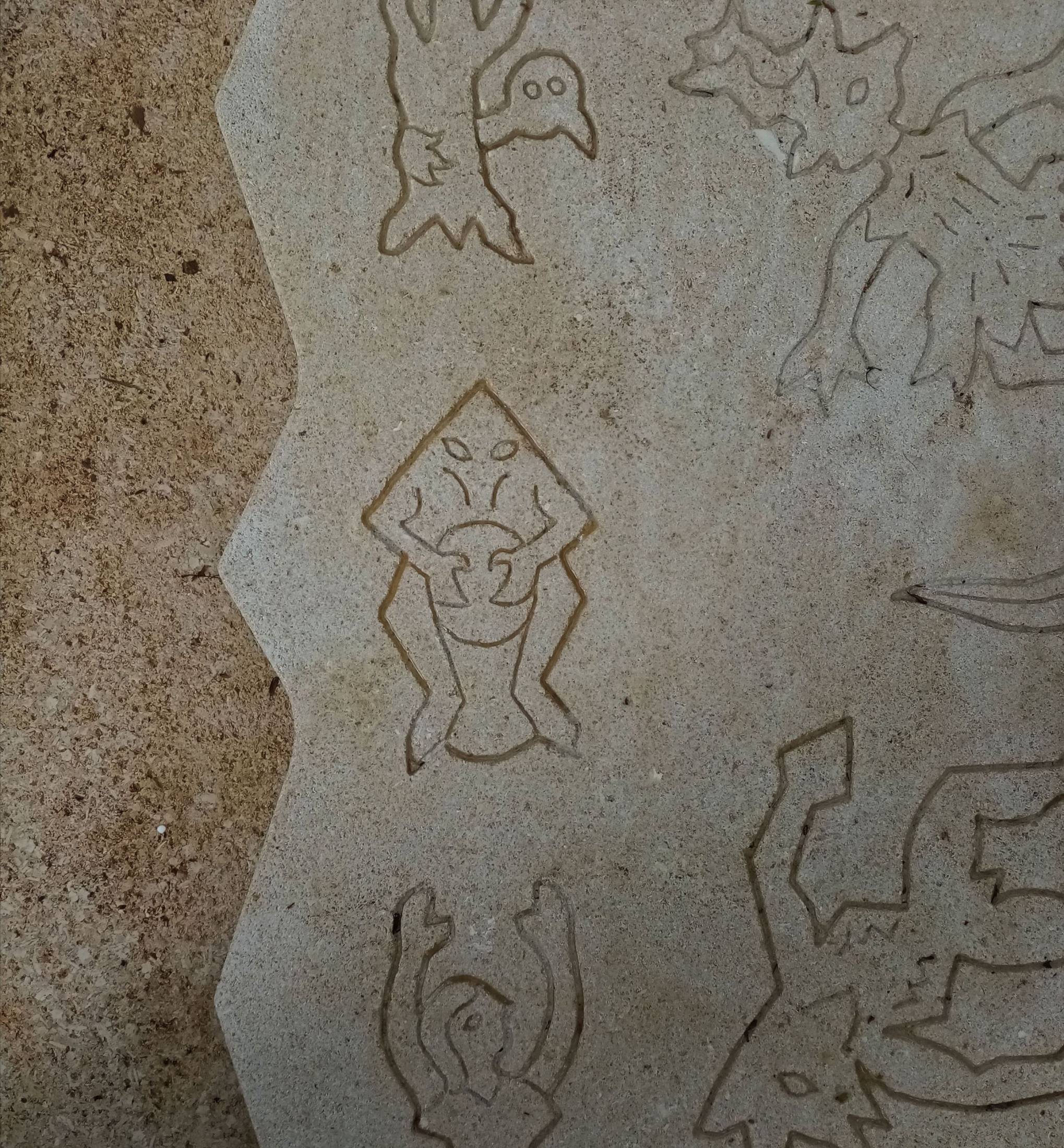 Détails des dessins gravés sur pierre de Senonville